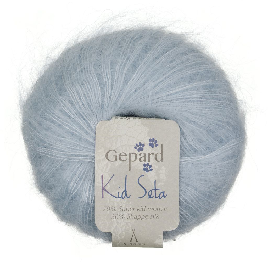 Kid Seta er spundet af 70% alle fineste mohairkvalitet og 30% fin silke. Resultatet er en super blød silk-mohair, som holder sig fyldig, og ikke klasker sammen i brug. Et klassisk lace-garn, som har været produceret af Gepard i over 20 år.