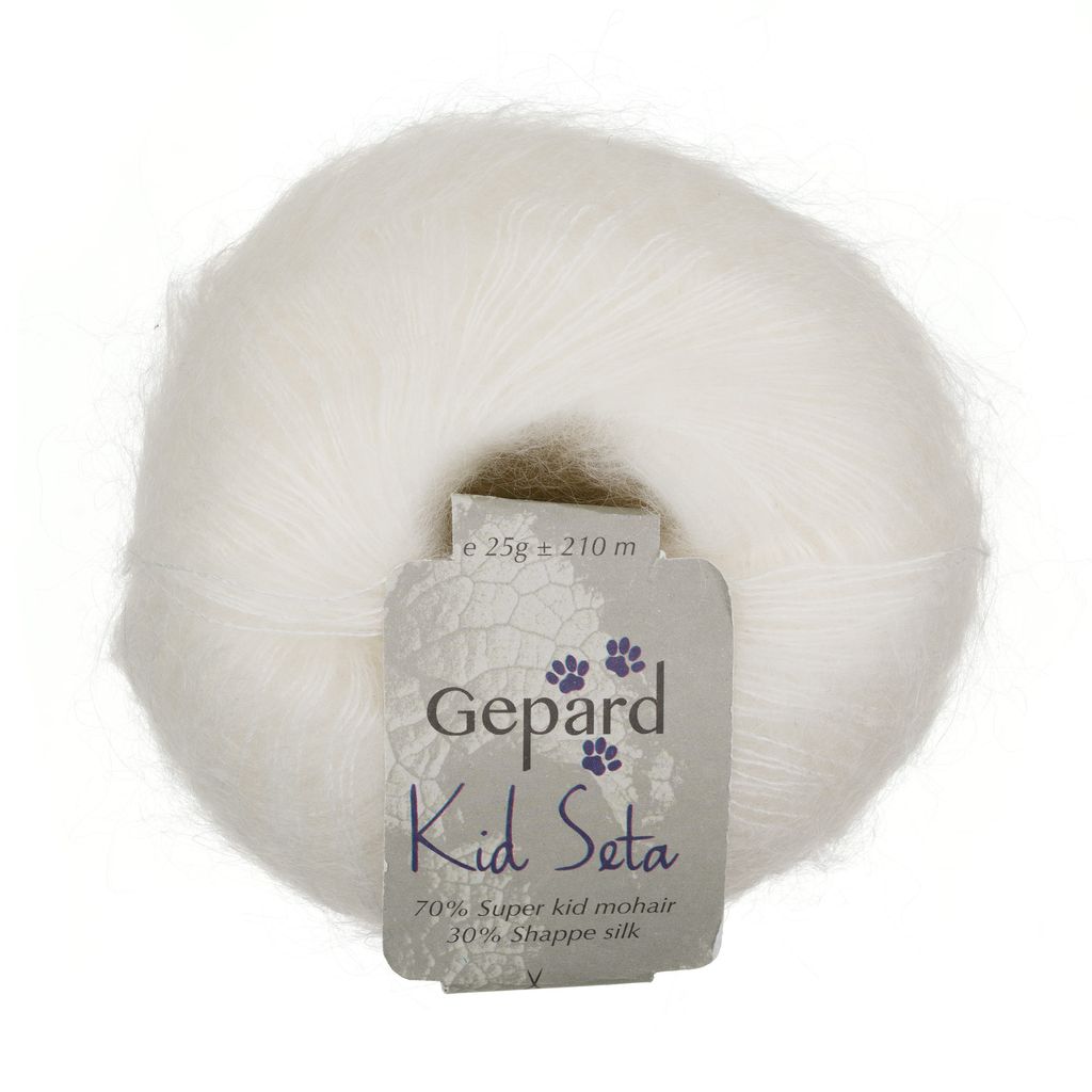Kid Seta er spundet af 70% alle fineste mohairkvalitet og 30% fin silke. Resultatet er en super blød silk-mohair, som holder sig fyldig, og ikke klasker sammen i brug. Et klassisk lace-garn, som har været produceret af Gepard i over 20 år.