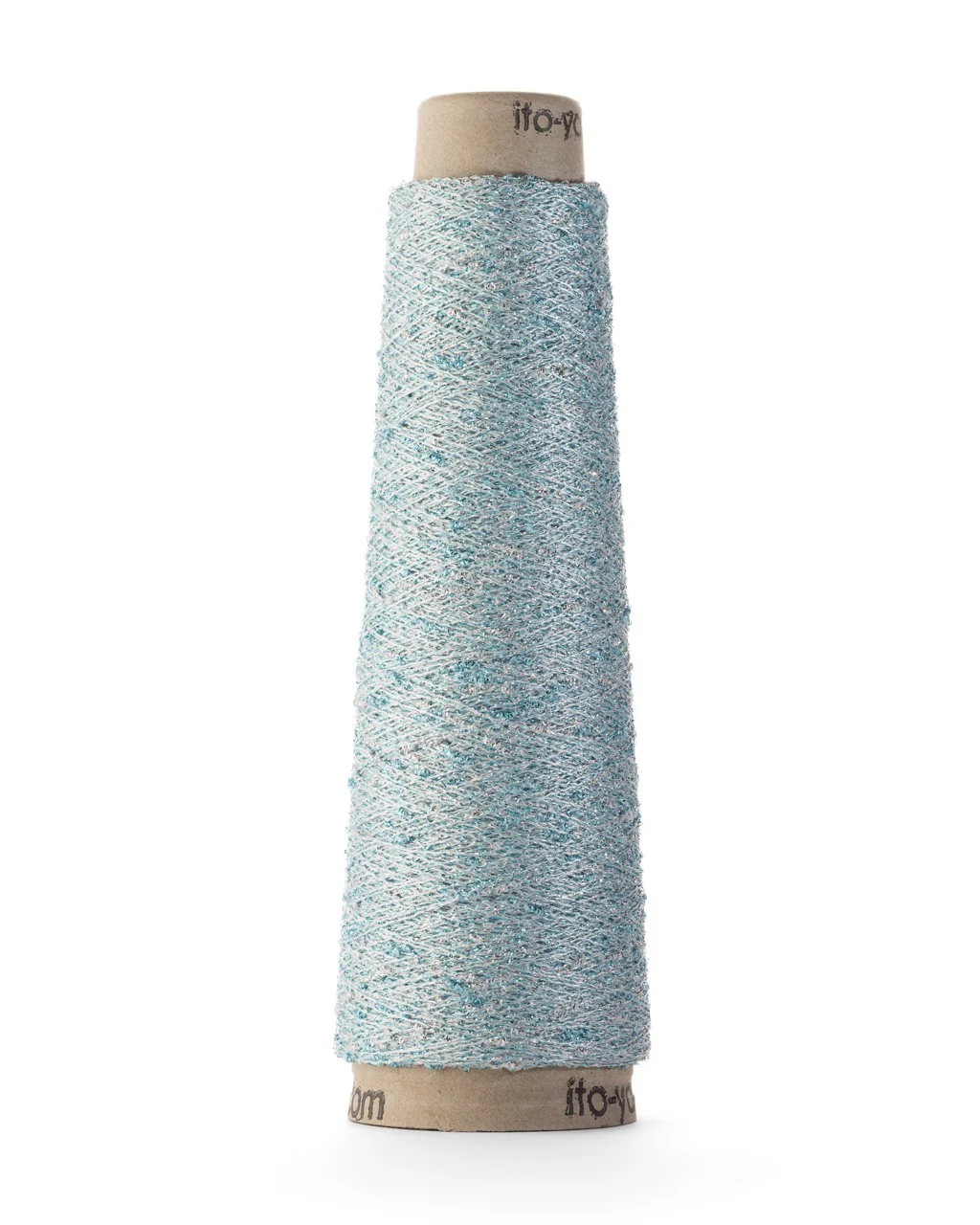 Med ITO Kin Gin kan du nemt tilføre lidt bling til dit strik. Da der er 300m på en cone, kan du strikke bling gennem hele arbejdet, hvis du ønsker det. ITO Kin Gin kan strikkes sammen med et hvilket som helst andet garn, og blender rigtig flot sammen med det garn den strikkes sammen med. ITO Kin Gin er et glimmer-garn der ikke kradser, og som vil tilføre et flot og lækkert udtryk til dit strik.
