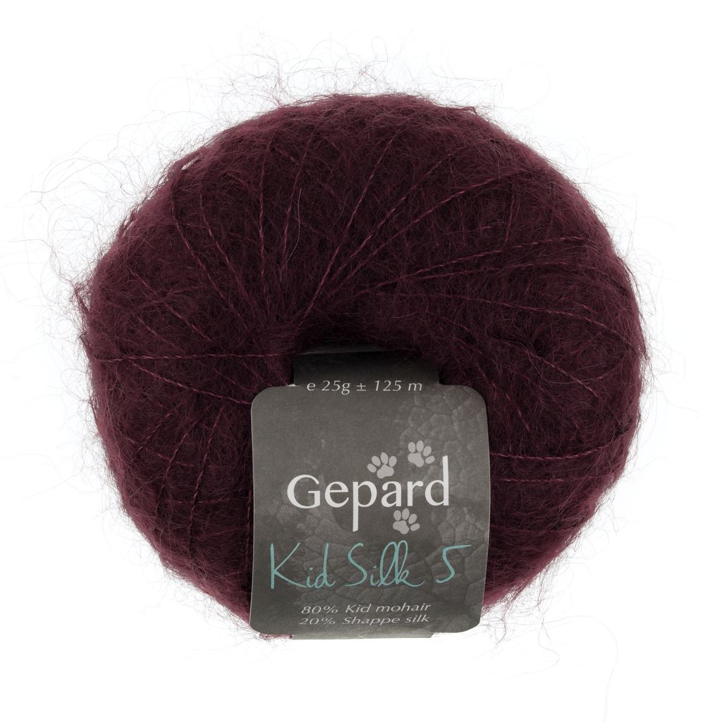 Kid Silk 5 er et dejligt blødt, men ekstra glansfuldt og ekstra fyldigt mohairgarn. Den fylder lidt ekstra, og er en unik tykkelse på markedet. Kid Silk 5 består ud over silke, af ekstra langfibret, glansfuld mohair, hvilket betyder at garnet kan få en mere langhåret overflade end de tynde mohairgarner som f.eks. Kid Seta. Med Kid Silk 5 strikker du en tynd og let mohair-bluse i en fart på p. 5 med en enkelt tråd, eller på p. 8 hvis du lægger garnet dobbelt. Strikker du i dobbelt garn vil du opleve, at garnet glider nemt, og trådene lægger sig fint sammen under strikningen. Du bruger ca. 5-6 nøgler til en bluse i enkelt tråd og 8-10 nøgler hvis du strikker med dobbelt tråd.