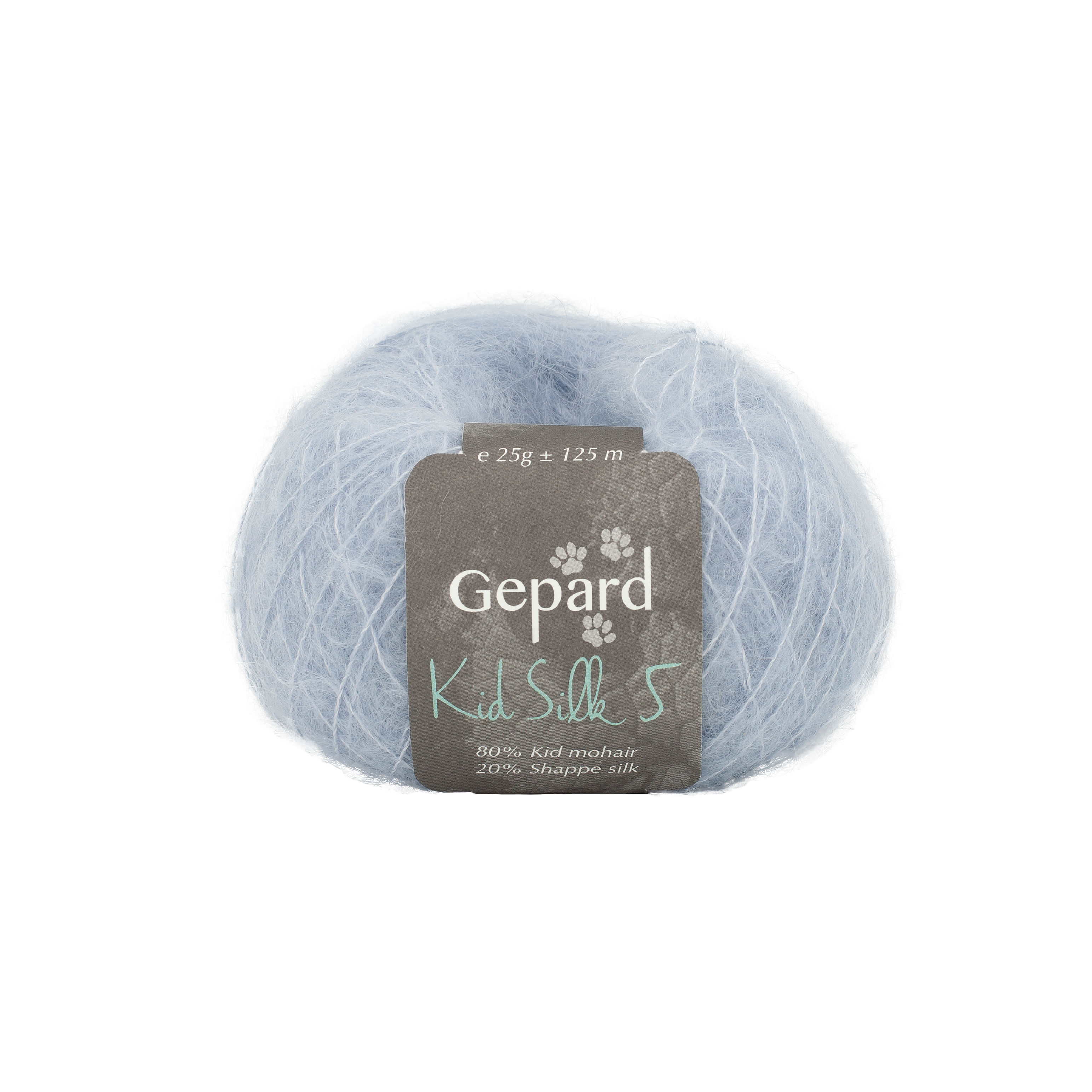Kid Silk 5 er et dejligt blødt, men ekstra glansfuldt og ekstra fyldigt mohairgarn. Den fylder lidt ekstra, og er en unik tykkelse på markedet. Kid Silk 5 består ud over silke, af ekstra langfibret, glansfuld mohair, hvilket betyder at garnet kan få en mere langhåret overflade end de tynde mohairgarner som f.eks. Kid Seta. Med Kid Silk 5 strikker du en tynd og let mohair-bluse i en fart på p. 5 med en enkelt tråd, eller på p. 8 hvis du lægger garnet dobbelt. Strikker du i dobbelt garn vil du opleve, at garnet glider nemt, og trådene lægger sig fint sammen under strikningen. Du bruger ca. 5-6 nøgler til en bluse i enkelt tråd og 8-10 nøgler hvis du strikker med dobbelt tråd.