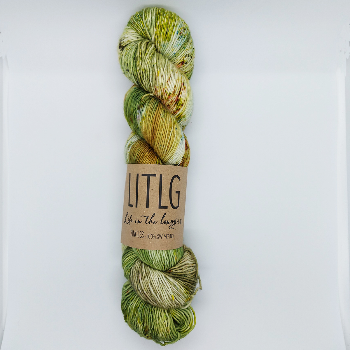 Merino Singles fra LITLG er et fantastisk lækkert håndfarvet merinogarn fra Life In The Long Grass i Irland. Garnet er utrolig blødt og et forholdsvis fast spundet 1-trådet garn. Det er håndfarvet i små portioner, som netop er det, der gør garnet helt unikt og fyldt med liv. Farverne er meget delikate og inspireret af den irske natur. Der er desuden taget hensyn til miljø og bæredygtighed gennem hele processen, og alle labels er af genanvendt papir.