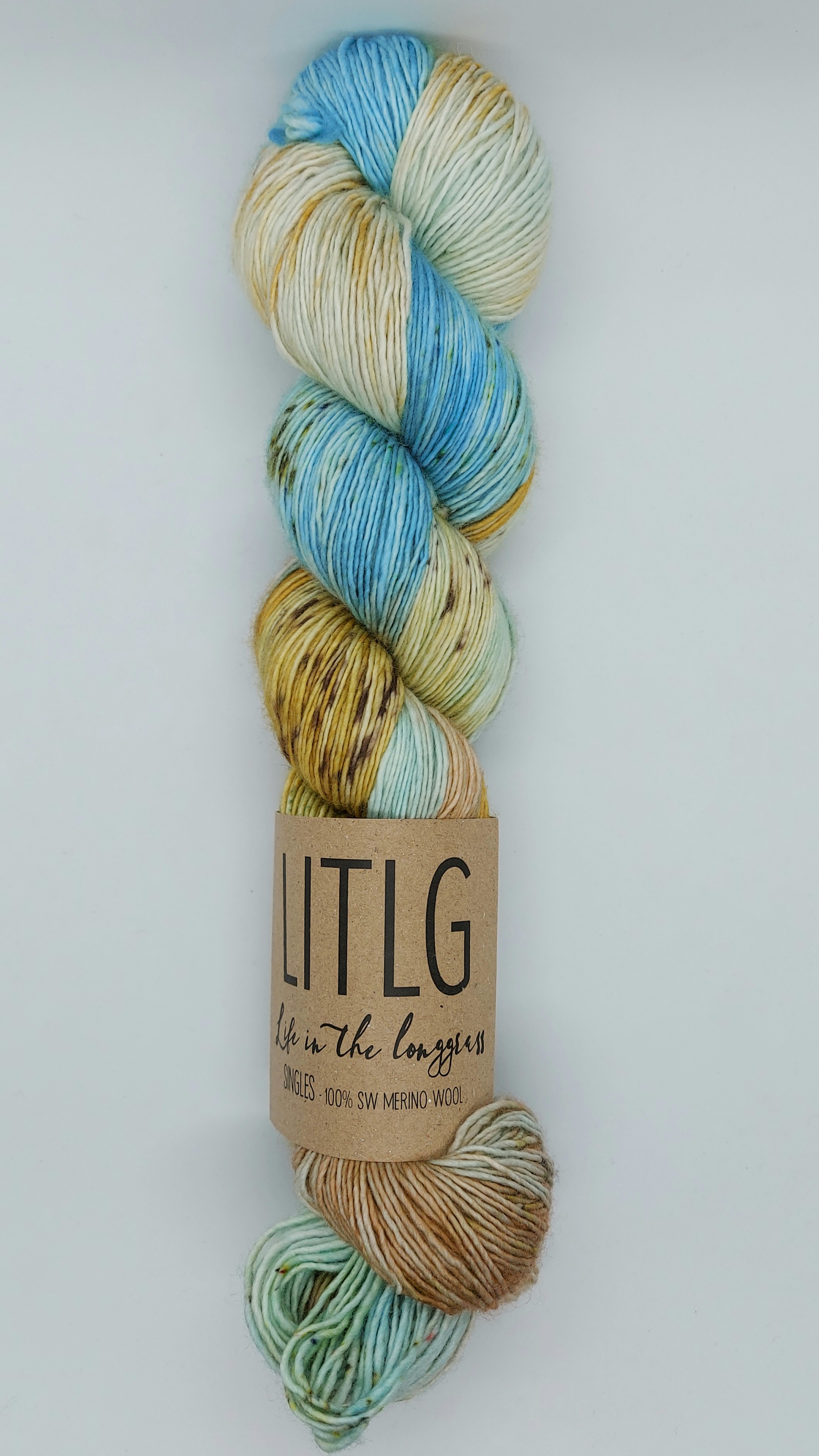 Merino Singles fra LITLG er et fantastisk lækkert håndfarvet merinogarn fra Life In The Long Grass i Irland. Garnet er utrolig blødt og et forholdsvis fast spundet 1-trådet garn. Det er håndfarvet i små portioner, som netop er det, der gør garnet helt unikt og fyldt med liv. Farverne er meget delikate og inspireret af den irske natur. Der er desuden taget hensyn til miljø og bæredygtighed gennem hele processen, og alle labels er af genanvendt papir.