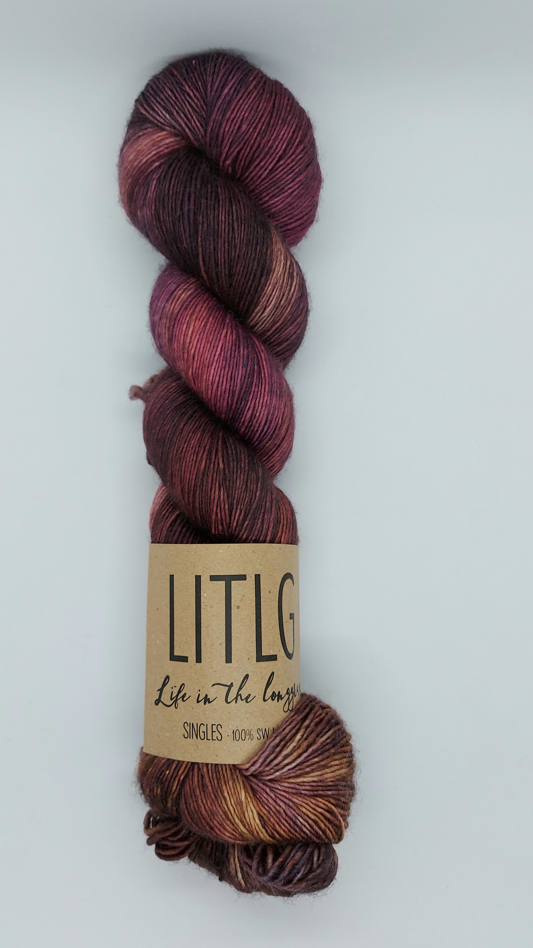 Merino Singles fra LITLG er et fantastisk lækkert håndfarvet merinogarn fra Life In The Long Grass i Irland. Garnet er utrolig blødt og et forholdsvis fast spundet 1-trådet garn. Det er håndfarvet i små portioner, som netop er det, der gør garnet helt unikt og fyldt med liv. Farverne er meget delikate og inspireret af den irske natur. Der er desuden taget hensyn til miljø og bæredygtighed gennem hele processen, og alle labels er af genanvendt papir.