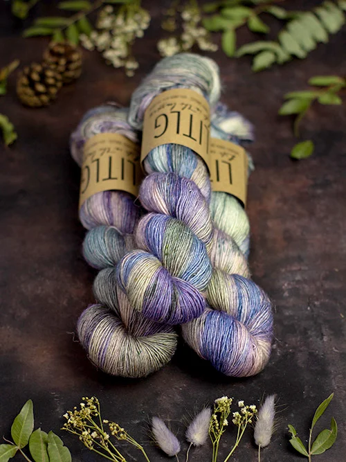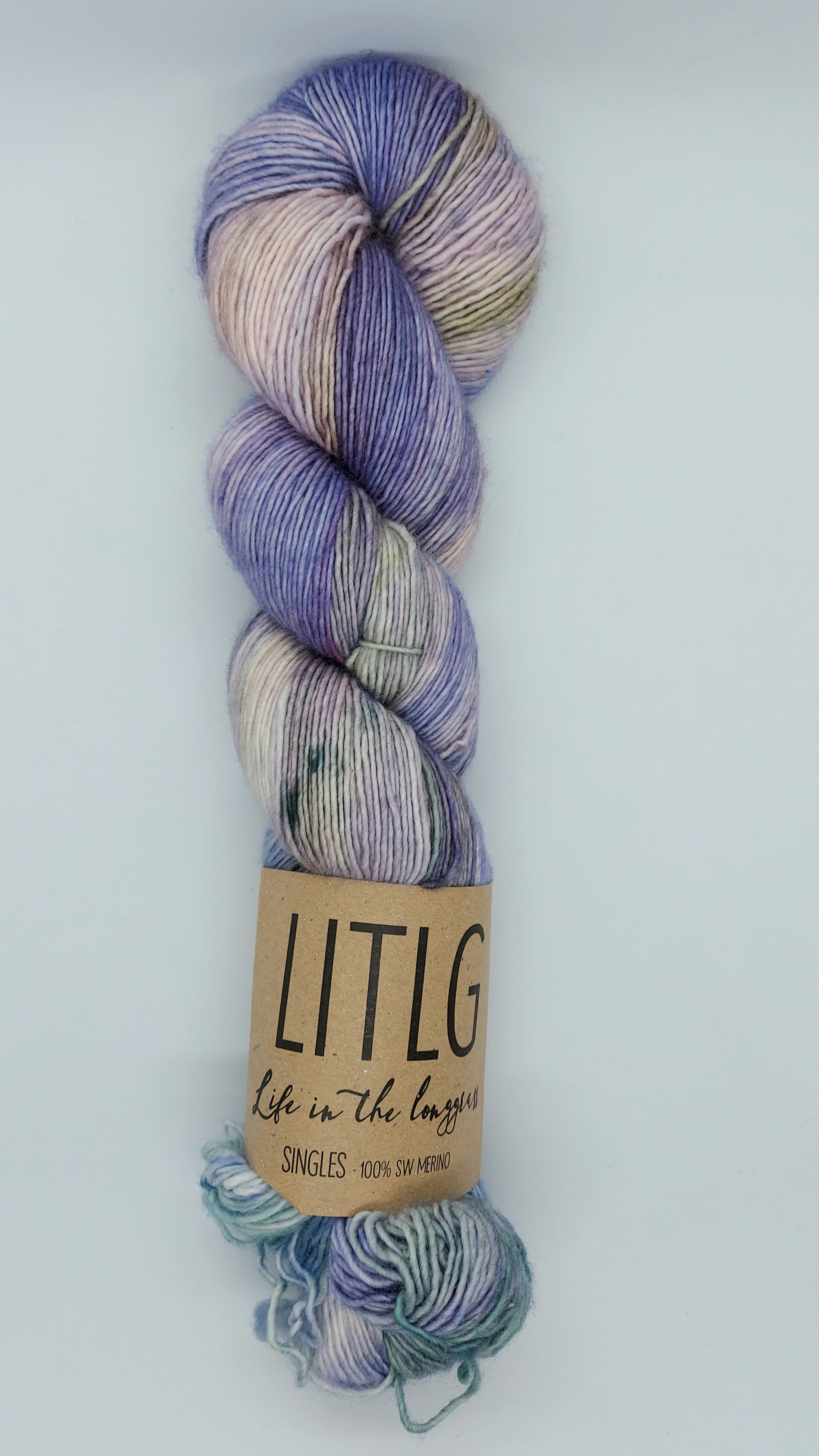 Merino Singles fra LITLG er et fantastisk lækkert håndfarvet merinogarn fra Life In The Long Grass i Irland. Garnet er utrolig blødt og et forholdsvis fast spundet 1-trådet garn. Det er håndfarvet i små portioner, som netop er det, der gør garnet helt unikt og fyldt med liv. Farverne er meget delikate og inspireret af den irske natur. Der er desuden taget hensyn til miljø og bæredygtighed gennem hele processen, og alle labels er af genanvendt papir.