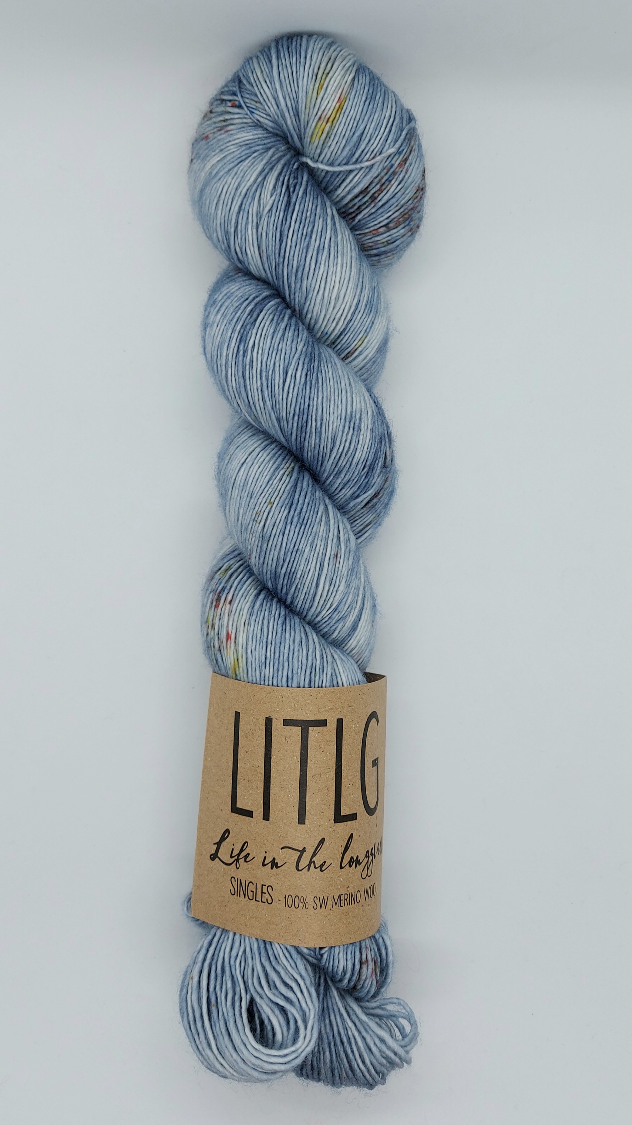 Merino Singles fra LITLG er et fantastisk lækkert håndfarvet merinogarn fra Life In The Long Grass i Irland. Garnet er utrolig blødt og et forholdsvis fast spundet 1-trådet garn. Det er håndfarvet i små portioner, som netop er det, der gør garnet helt unikt og fyldt med liv. Farverne er meget delikate og inspireret af den irske natur. Der er desuden taget hensyn til miljø og bæredygtighed gennem hele processen, og alle labels er af genanvendt papir.