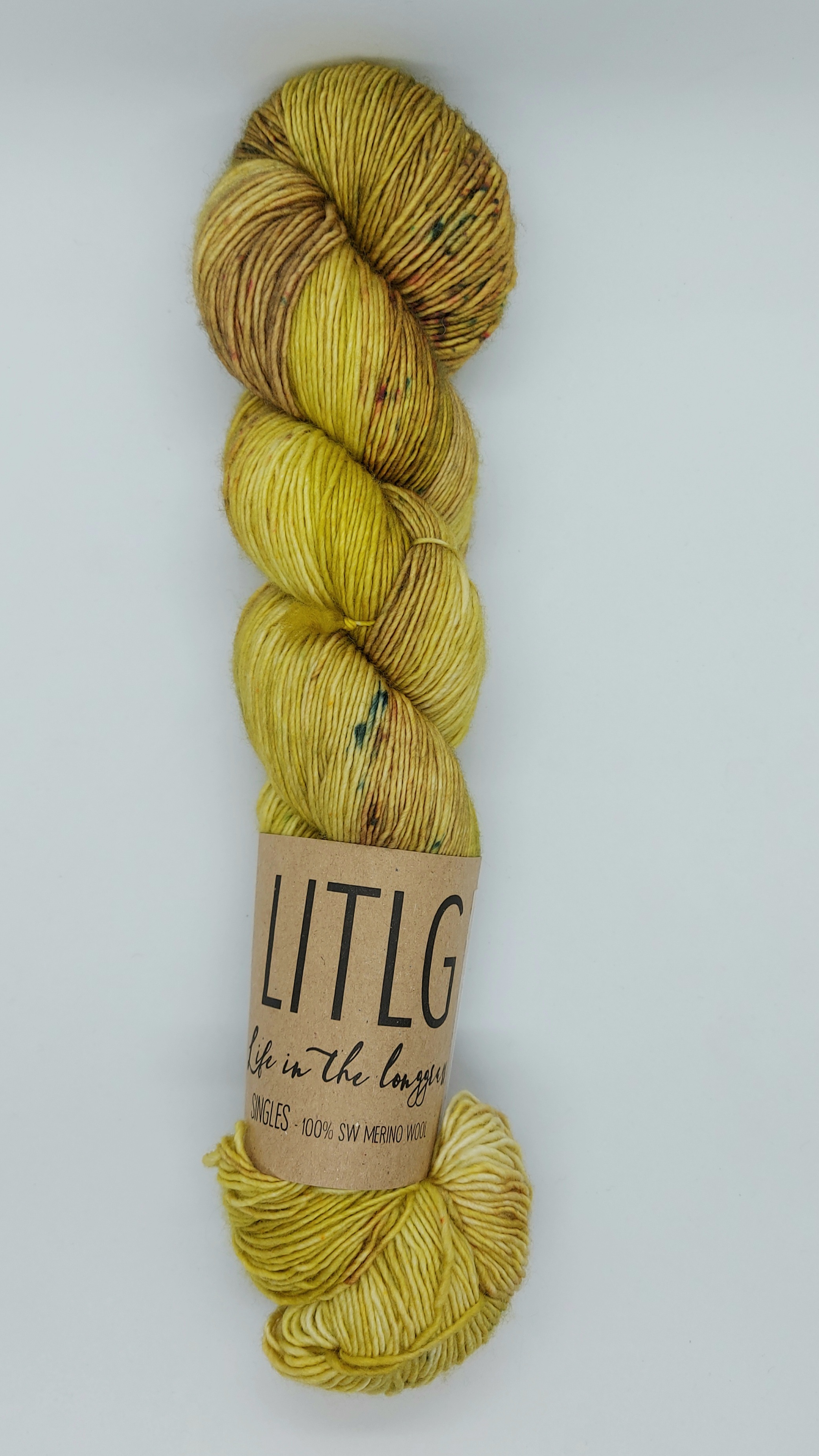 Merino Singles fra LITLG er et fantastisk lækkert håndfarvet merinogarn fra Life In The Long Grass i Irland. Garnet er utrolig blødt og et forholdsvis fast spundet 1-trådet garn. Det er håndfarvet i små portioner, som netop er det, der gør garnet helt unikt og fyldt med liv. Farverne er meget delikate og inspireret af den irske natur. Der er desuden taget hensyn til miljø og bæredygtighed gennem hele processen, og alle labels er af genanvendt papir.