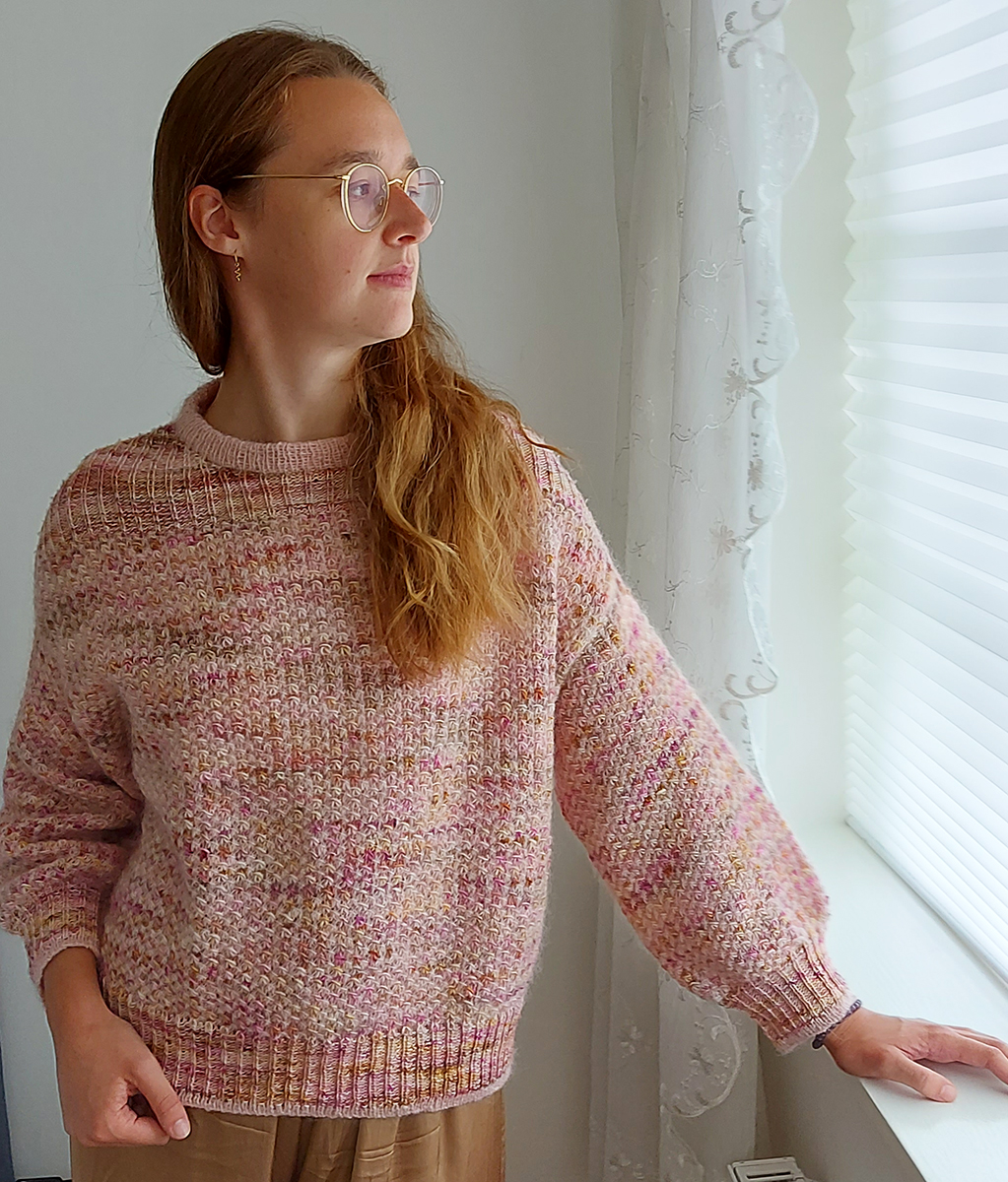 Stardust Sweater er en let oversize sweater med rund hals og tilsatte ærmer.