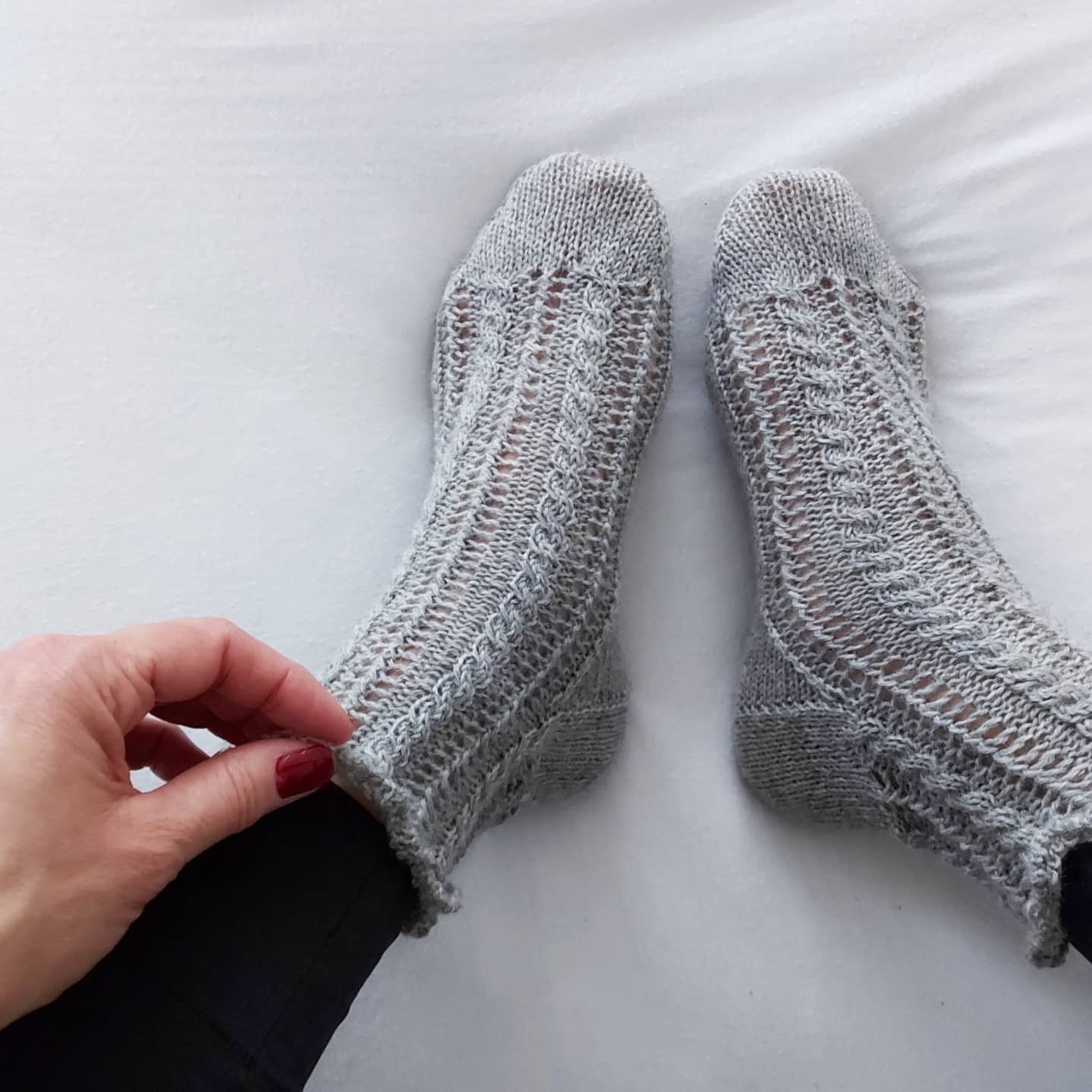Lace Socks strikkes rundt på strømpepinde. Der startes med flæsen øverst på skaftet, og strikkes ned mod tåen. Efter flæsen strikkes skaftet rundt i mønster. Mønsteret fortsætter ned over vristen. Der strikkes kilehæl, og foden strikkes med mønster på oversiden og glat på undersiden. Prøv sokken på, før der til sidst sluttes af med indtagninger til tå. Den flotte flæsekant i starten af skaftet og retmasken langs hælen giver Lace Socks en flot finish.