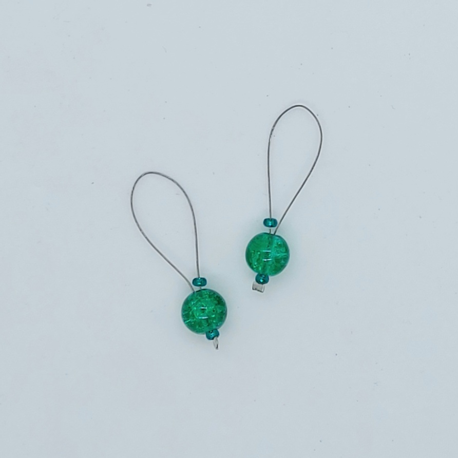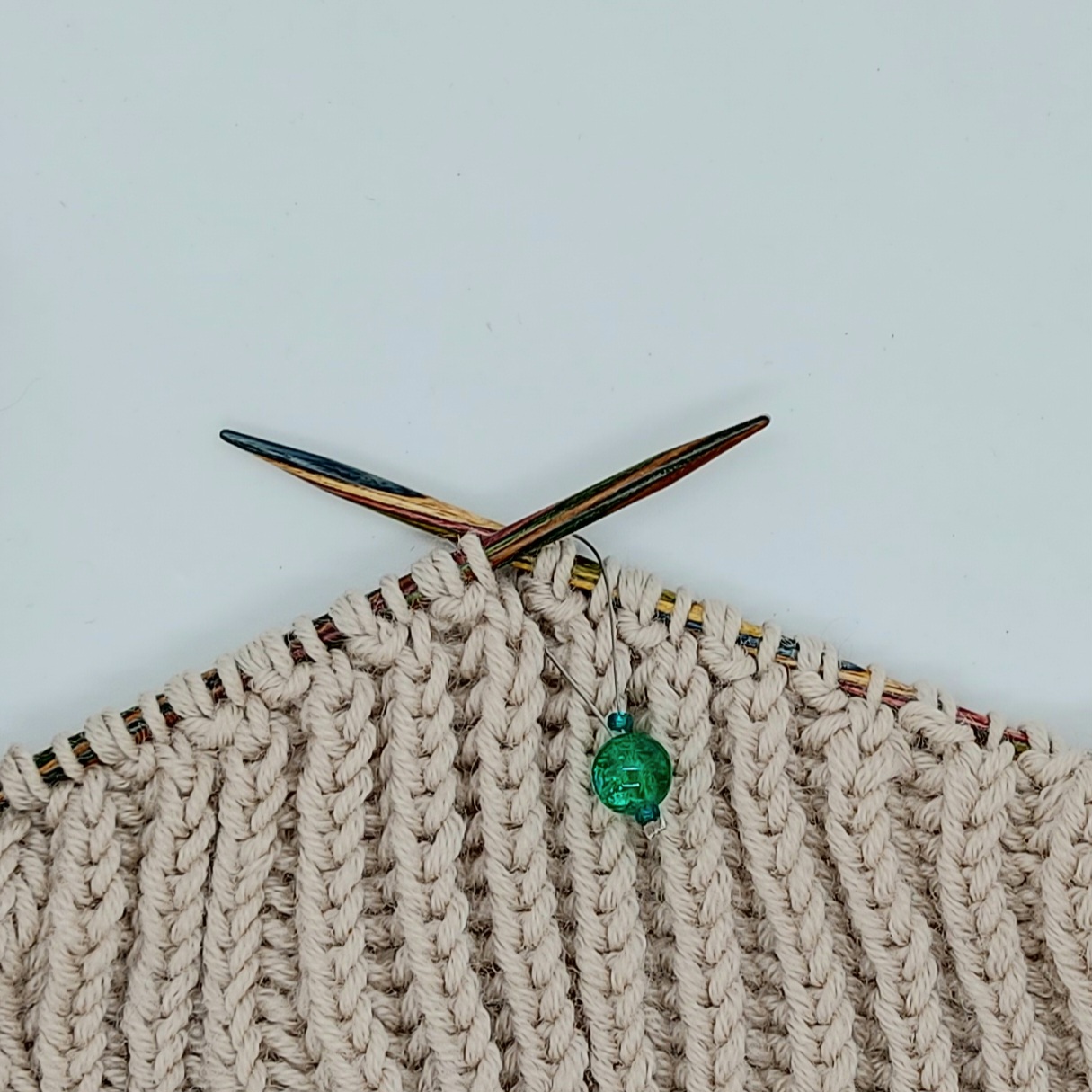 Fine praktiske maskemarkører med farvet glasperle. Markørerne er monteret med en wire, en glasperle, to små perler og en wireklemme. Markøren anvendes som maskemarkør og placeres på strikkepinden mellem to masker. Perlen har en passende tyngde, så man på en behagelig måde nemt kan mærke den på strikketøjet når man strikker.