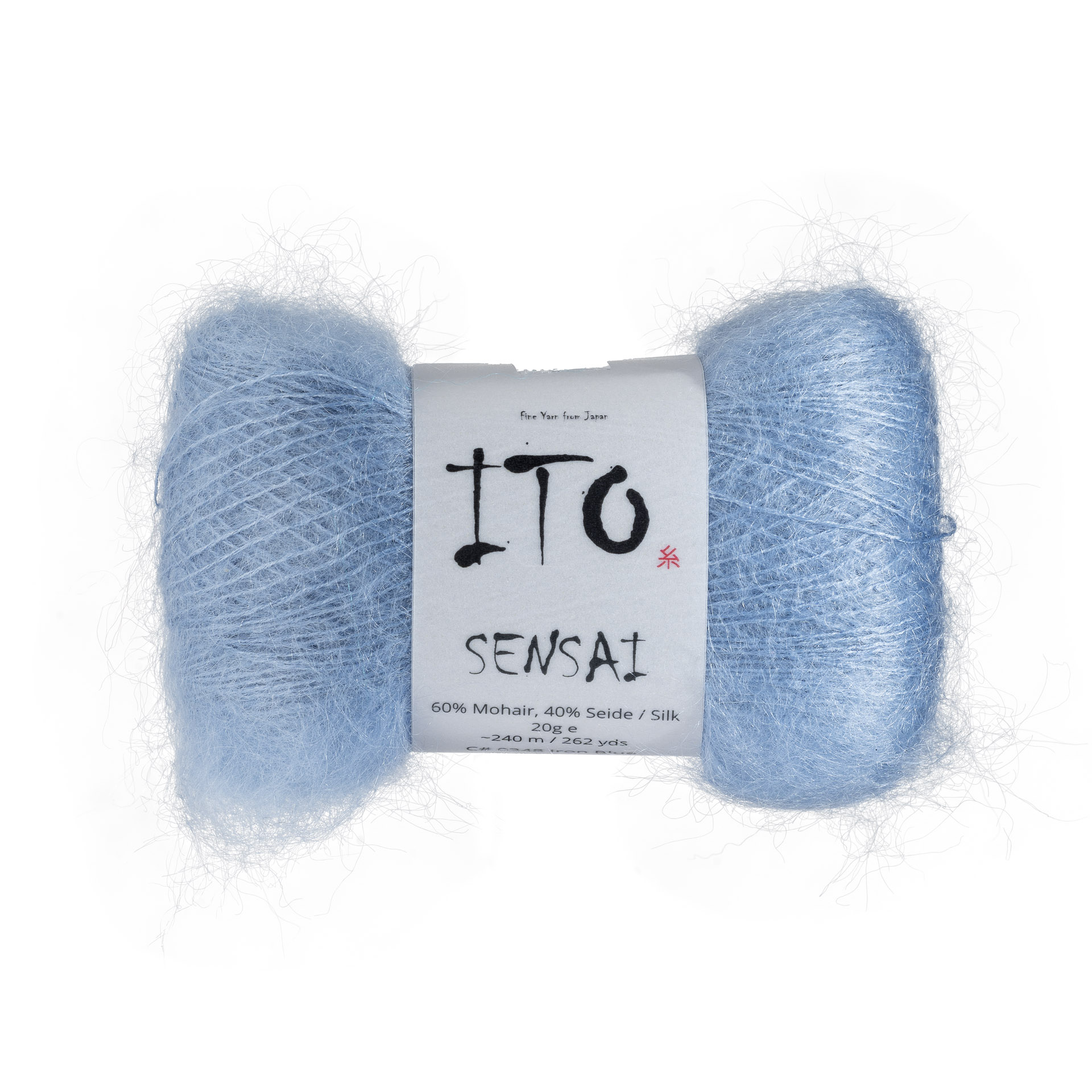 ITO Sensai er en smuk og helt blød blanding af silke og mohair med en utrolig lang løbelængde. Da indholdet af silke er højt, er garnet meget glansfuldt og elegant. Det betyder også, at ITO Sensai holder rigtig godt på mohairfibrene, og garnet ikke fælder så meget som andre Silk-Mohair kvaliteter kan gøre. Garnet er helt let og strikker man ITO Sensai alene, er det virkelig velegnet til lace-sjaler eller helt lette bluser, men er især fantastisk som følgetråd sammen med andre garner. Det kan også lægges dobbelt eller tredobbelt, hvis man ønsker det helt luftige og luksuriøse udtryk. Et af markedets virkelig bedste kvaliteter.